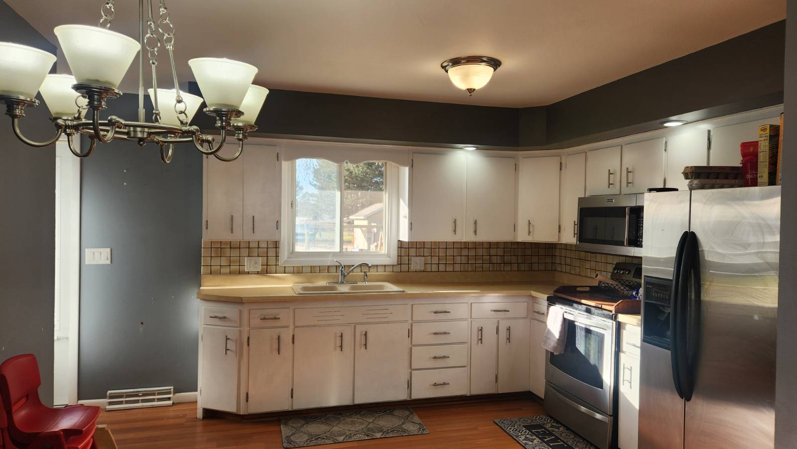 This ranch style home is located in a quiet part of town with easy access to amenities. Large family room with updated flooring. Currently 1 bedroom and 1 bathroom on the main level but enlarged family area could be converted back to a bedroom, making two on the main level. Sellers are willing to make all repairs related to turning the daycare back into main level living - you can even pick the paint color! Downstairs is fully finished with a large bedroom and bonus room! Great family room and laundry also in basement. Full finished bathroom. Shelter area or additional storage. Both bathrooms in the home have been recently updated - upstairs bathroom even has a jetted tub. The kitchen has a nice pantry area with extra shelving and plenty of storage. Lots of cabinets and built-ins. This home has a HUGE backyard with unique features. Large shed with electricity and additional storage building also included. Covered patio for outside entertaining. Alley access makes it possible to add another garage or large shop if desired. Mature landscaping adds to evening enjoyment and curb appeal. Single car attached garage. The main level of this home is currently used as "in home" daycare, but can be easily returned to personal living. This home is great as it sits, or has huge potential to become just what you want and need! Give me a call.