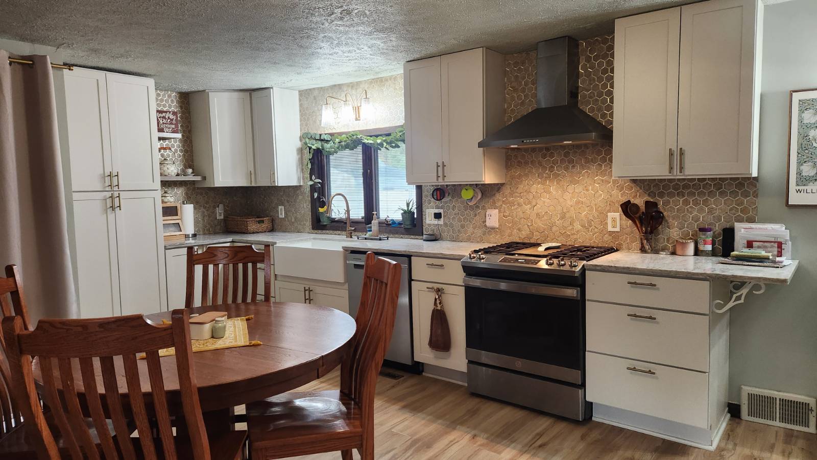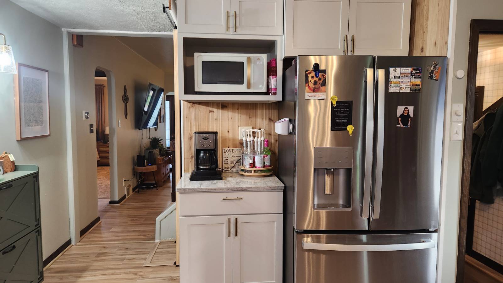 Renovation: Total kitchen remodel - new cabinets, countertops, appliances, paint, flooring and backsplash, all new flooring on main level, paint - inside and out, added vinyl fencing, insulated & added heat, air and 50 amp RV plug to detached garage, plus more!!!